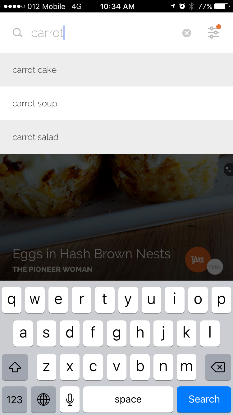 你的app搜索栏应总是预先载入对每个用户有用的查询信息。这个个性化的操作也益处多多。通过提示相关的内容,用户使用起来更快捷更方便。