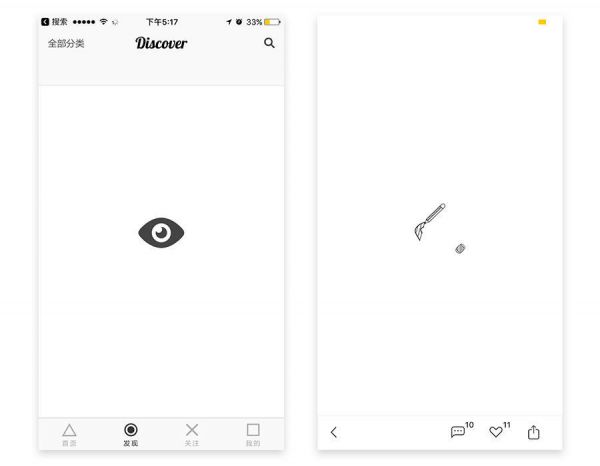 左侧的开眼APP,将自己的logo进行变换,仿佛一个眼睛在转啊转;右侧的好奇心日报APP,用铅笔和橡皮擦,将自己的品牌字母Q,进行手写和擦除。这种形式不仅增加了loading的趣味性和设计感,同时还达到了强化品牌的效果,大家可以借鉴使用。