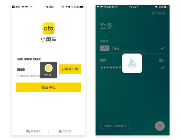 在做此类loading设计的时候要注意两个点,一个是请求超时的规定(每个loading形式都要考虑这个点),例如我习惯于定为10秒,超过10秒还没有加载成功,就提示用户加载失败,请重试。如果是网络,则提示是因为网络原因,其他原因则提示加载失败,请重试。第二个是视觉层面,很多产品都会简单的用系统自带的菊花loading,更高级的做法是像ofo或Airbnb一样,设计一个和产品或品牌相关的loading,这样loading会和整个产品达成视觉统一,也更具设计感,并且对用户更友好。